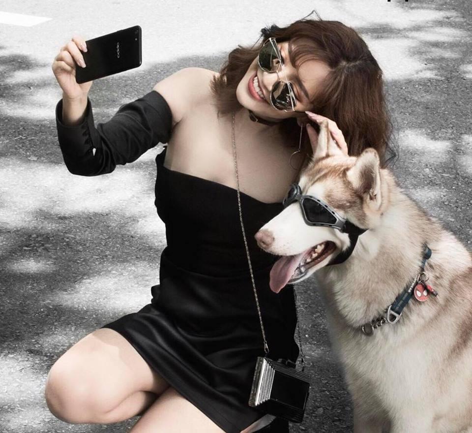 Ca sĩ Bích Phương sành điệu và gợi cảm khoe làn da nõn nà trong chiếc váy cúp ngực màu đen selfie cùng cún cưng cực "chất".