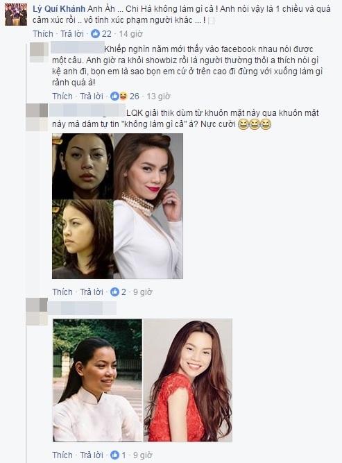 Lời lẽ thâm thúy sâu cay của Hồ Ngọc Hà lập tức nhận được sự hưởng ứng nhiệt tình của mọi người. Người đăng tải bức ảnh tỏ ra khá khó chịu và liên tục công kích nữ ca sĩ. Tuy nhiên, Hồ Ngọc Hà dường như chẳng quan tâm vì những điều cần nói cô đã chia sẻ hết rồi.