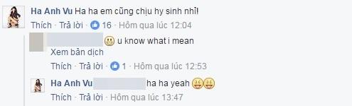 Người hâm mộ còn bất ngờ hơn nữa khi chân dài Hà Anh cũng "góp mặt" trong sự việc này. Có vẻ như người mẫu và cư dân mạng này có mối quan hệ thân thiết từ trước đó, cô hưởng ứng bằng chia sẻ: "Haha em cũng chịu hy sinh nhỉ!".