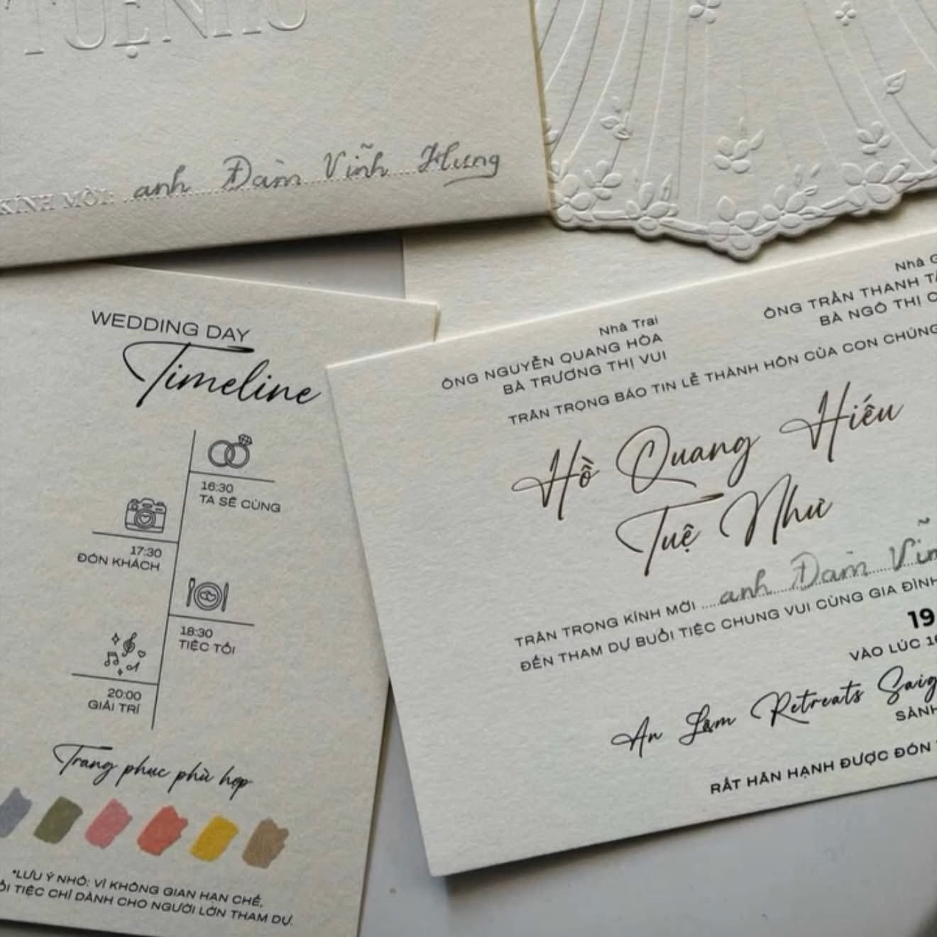 Trước đó, Hồ Quang Hiếu cũng hé lộ thiệp cưới với tông màu trắng be. Đám cưới của cặp đôi được dự đoán sẽ diễn ra vào ngày 19/9 tới đây tại một khu nghỉ dưỡng cao cấp. Ngoài ra, dàn khách mời cũng được dự đoán toàn cái tên hot hit, đình đám.