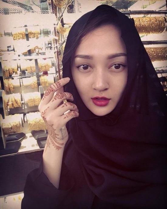 Bảo Anh rất hứng thú khi diện trang phục truyền thống của phụ nữ đạo Hồi.
