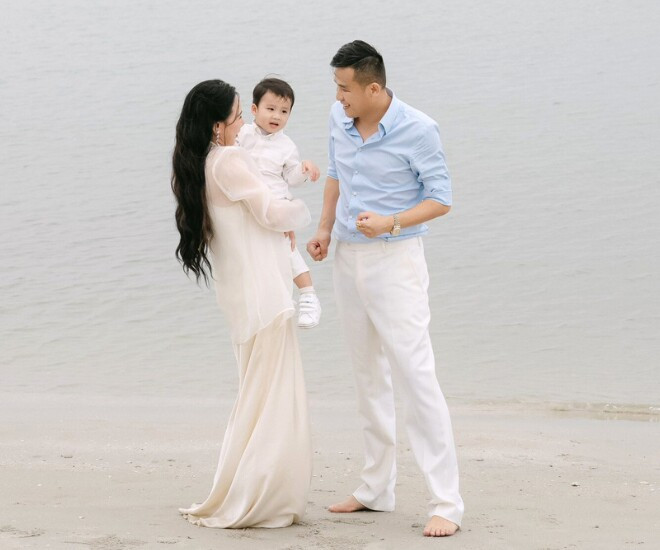 Cả gia đình tận hưởng kì nghỉ ở biển khoe khung hình quây quần đẹp mắt. Kèm theo bộ ảnh, Hồ Quỳnh Hương nhắn nhủ: "Ba Thành, mẹ Hương và Táo".