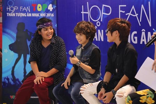 Chiều qua, top 5 của Thần tượng âm nhạc nhí – Vietnam Idol Kids 2016 gồm Hồ Văn Cường, Jayden, Bảo Trân, Gia Khiêm và Thiên Tùng đã có một buổi giao lưu cùng người hâm mộ tại Tp. Hồ Chí Minh. Ngoài top 5, các bé trong top 13 năm nay gồm Khánh Linh, Bảo Khương, Thùy Anh và Linh Hoa cũng có mặt.