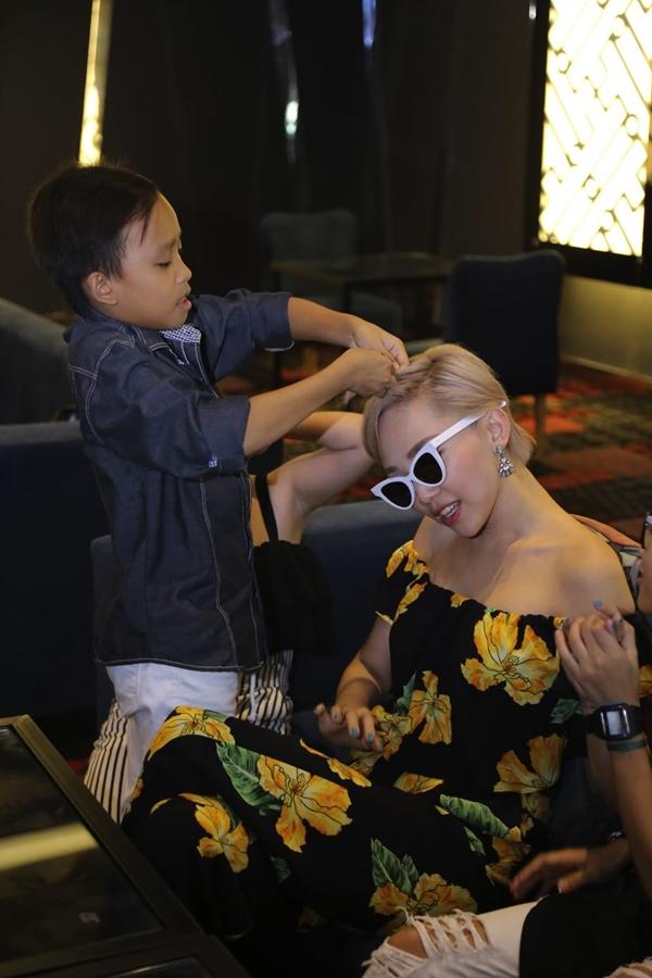 Đặc biệt, giám khảo Tóc Tiên dù bận rộn nhưng vẫn dành thời gian đảm nhận vai trò MC để giúp các “idol nhí” khuấy động buổi giao lưu.