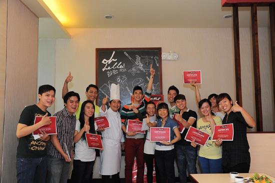 Hồ Vĩnh Khoa trao bằng chứng nhận “Chuyên gia Pizza” và chụp ảnh lưu niệm cùng các bạn tham gia