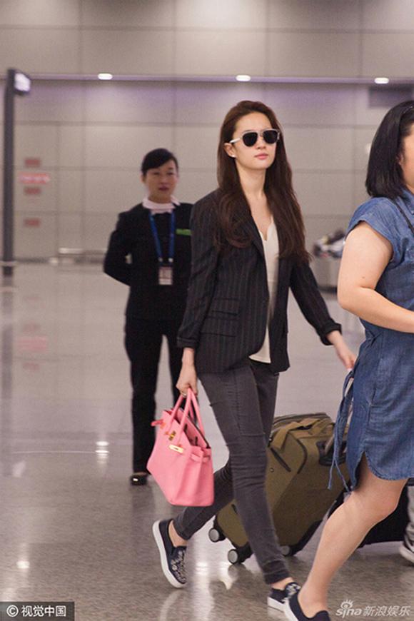 Lưu Diệc Phi là tín đồ túi hiệu Hermes. Chiếc túi hai màu ghi và tím Hermes