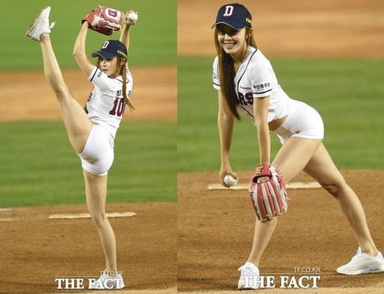 Choi Seol Hwa, 24 tuổi, là người đang nắm giữ danh hiệu Miss Muscle Mania Bikini 2016 (Hoa hậu thể hình bikini). Tuần trước, cô xuất hiện ở trận đấu bóng chày của CLB Doosan Bears và ngay lập tức gây chú ý khi ăn vận gợi cảm và thực hiện một cú ném tượng trưng ở đầu trận.