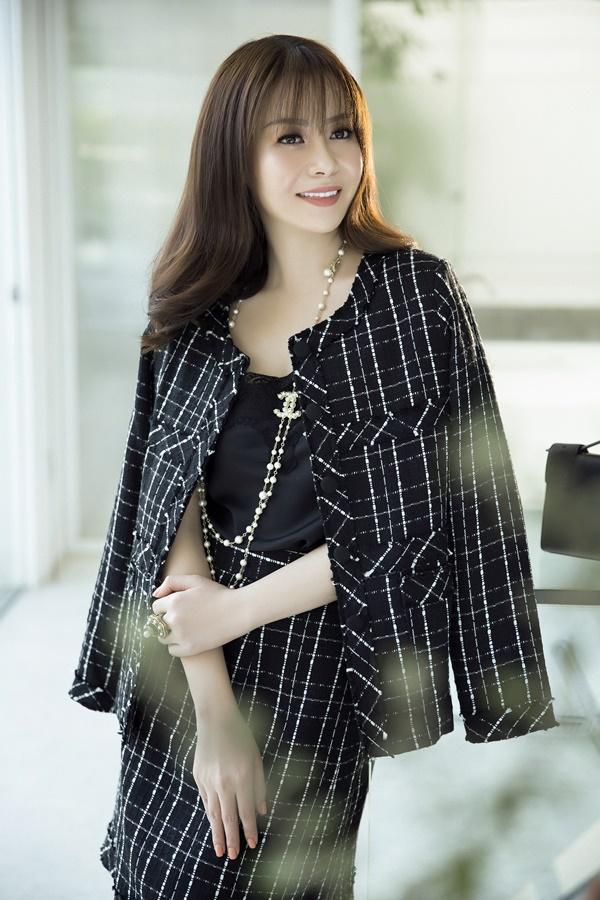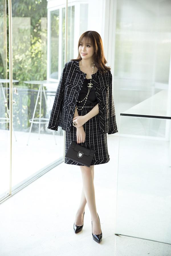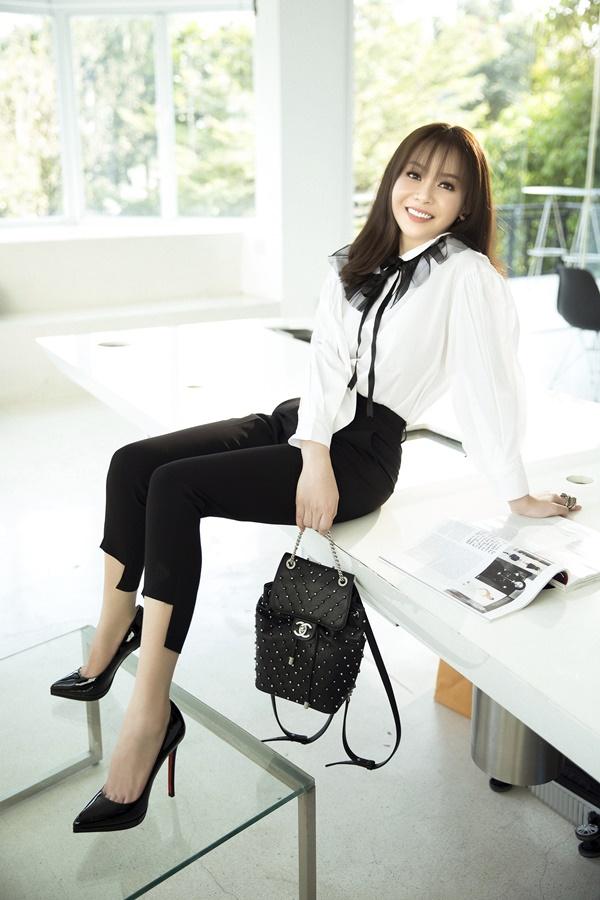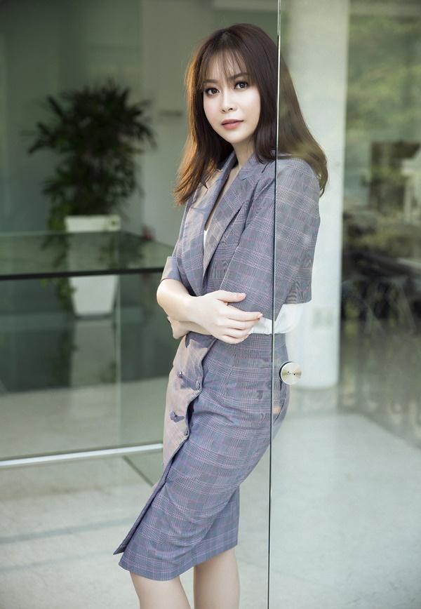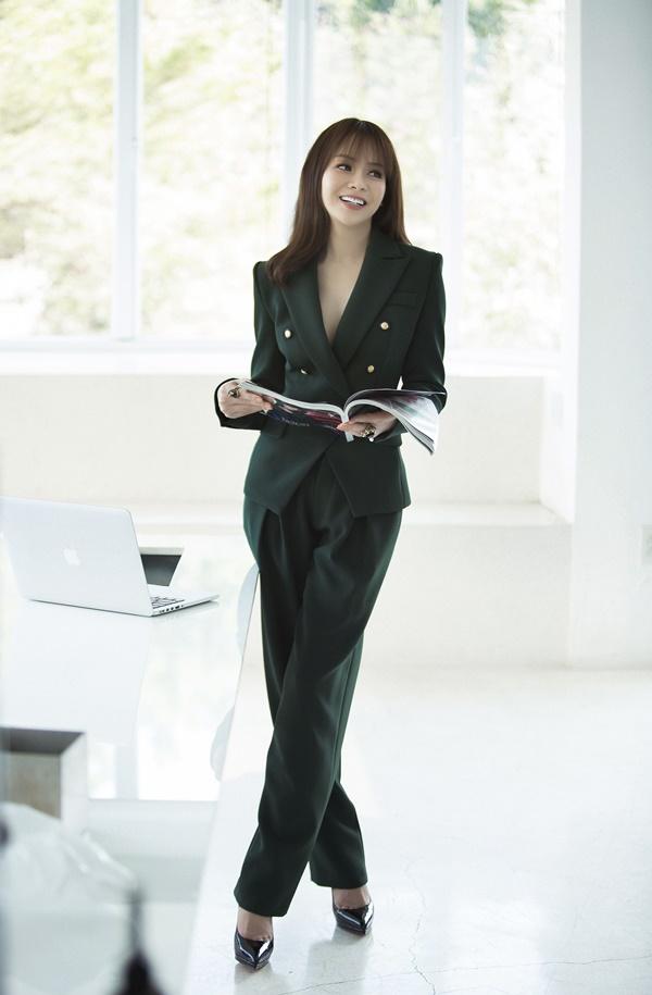 khi biến hóa trong trang phục thời trang công sở. Mái tóc cắt ngắn năng động và hiện đại cùng với