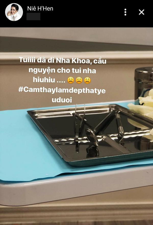 "Tôi đã đi Nha khoa. Cầu nguyện cho tôi nha, cảm thấy làm đẹp thật yếu đuối", H'Hen Niê viết. Hình ảnh được mỹ nhân đăng kèm theo đó là các dụng cụ chuyên dụng cho việc chỉnh nha.