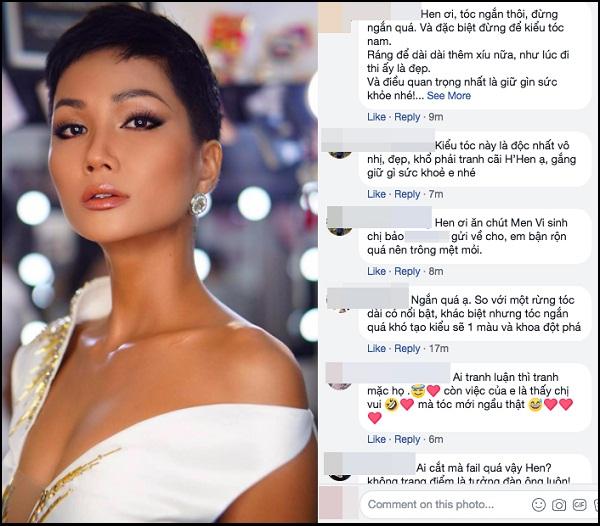 Bên cạnh những ý kiến khen ngợi mái tóc mới giúp H'Hen Niê trở nên mạnh mẽ, cá tính hơn, vẫn có rất nhiều bình luận cho rằng kiểu tóc này ngắn quá mức và khiến người đẹp Ê Đê trở nên nam tính.