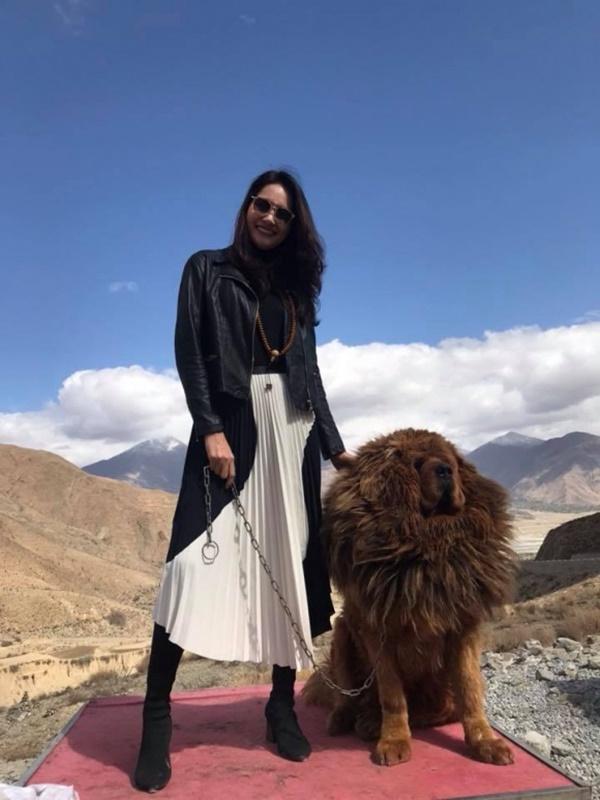 Hương Giang rất thích chú chó ngao Tây Tạng