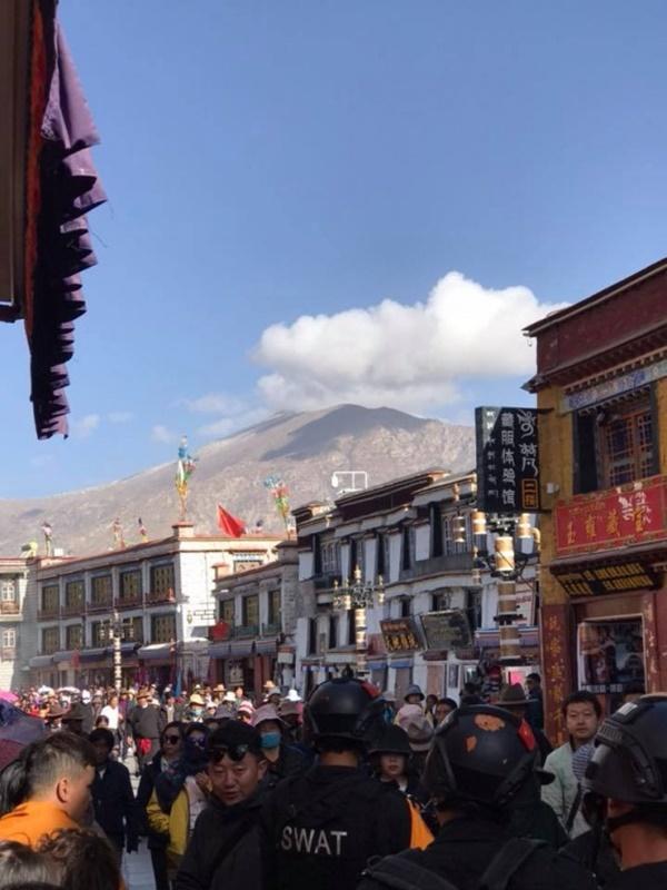 Xung quanh khu vực này và Lhasa nói chung là từng tốp quân đội canh gác nghiêm cẩn, đi tuần tra khắp nơi, cứ mỗi 100m là một hệ thống camera quan sát. Nó cũng không ngăn được dòng người hành hương từ khắp nơi đổ về chiêm bái, đi kora vòng qua đền.