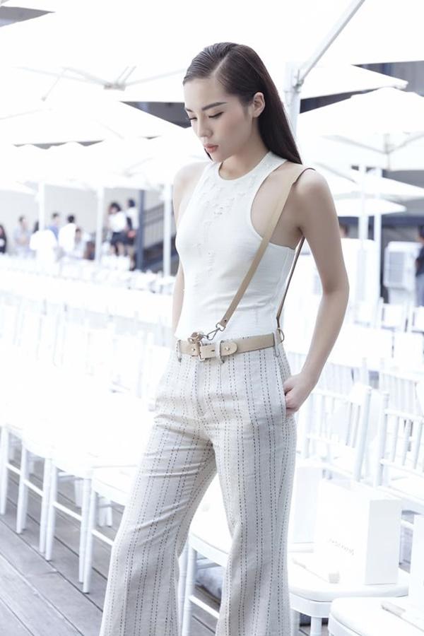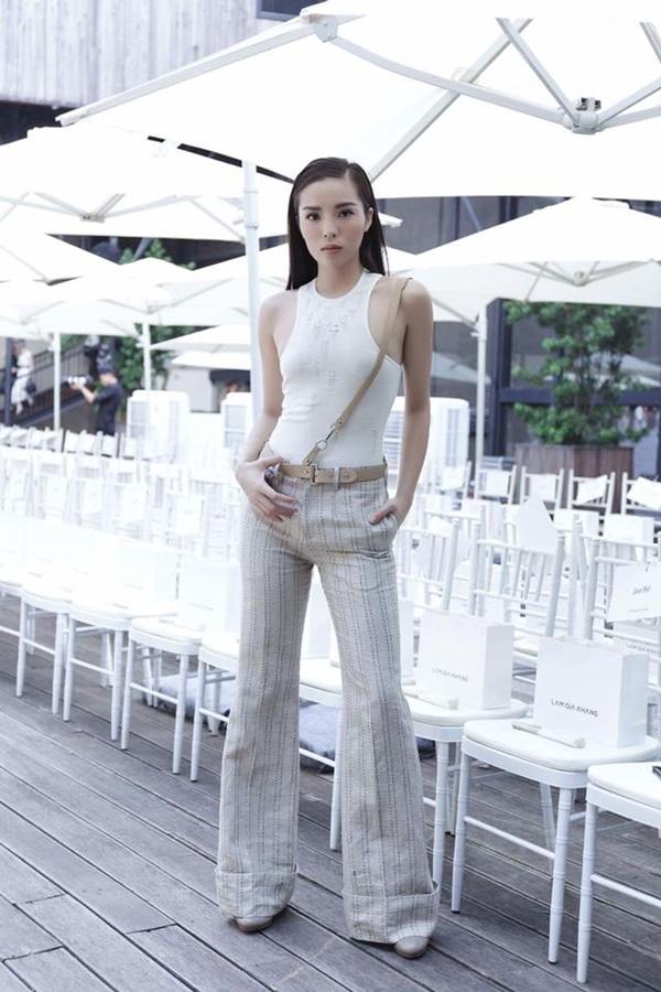 Cách đây không lâu tại một show thời trang, Kỳ Duyên xuất hiện với tư cách khách mời và tự tin diện trang phục chiết eo với quần cạp cao, áo sát nách khoe đường cong nuột nà.