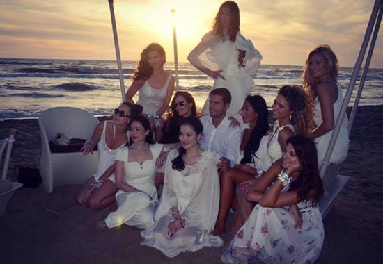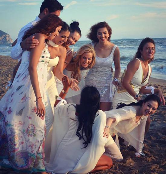Nguyễn Thị Huyền và các người đẹp cùng nhau tạo dáng chụp hình vui vẻ