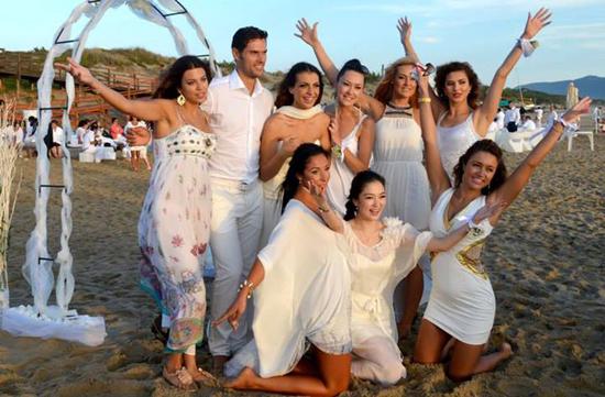 và ai nấy đều thoải mái với bữa tiệc ngoài bở biển xinh đẹp Sabaudia ở Lazio, Ý.