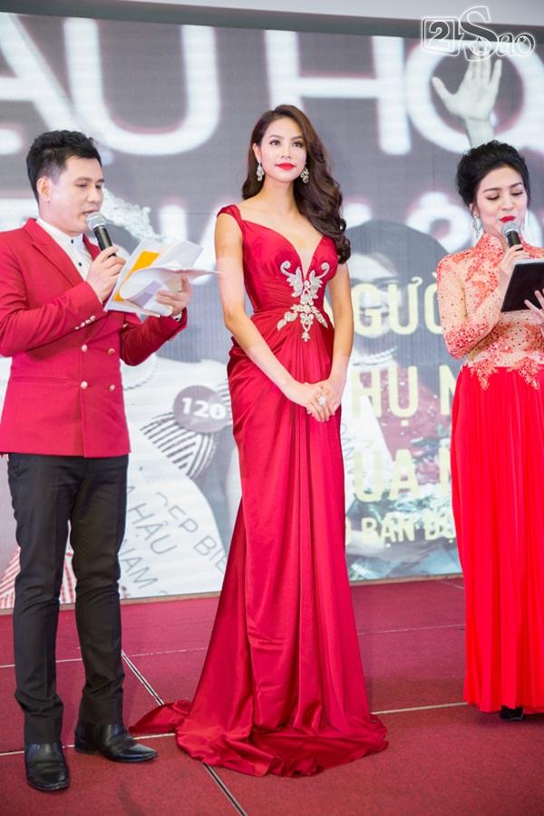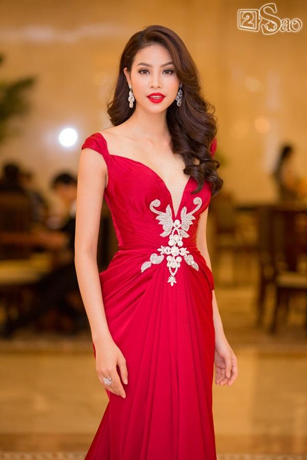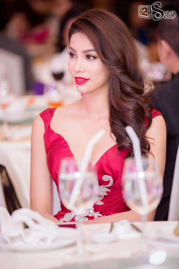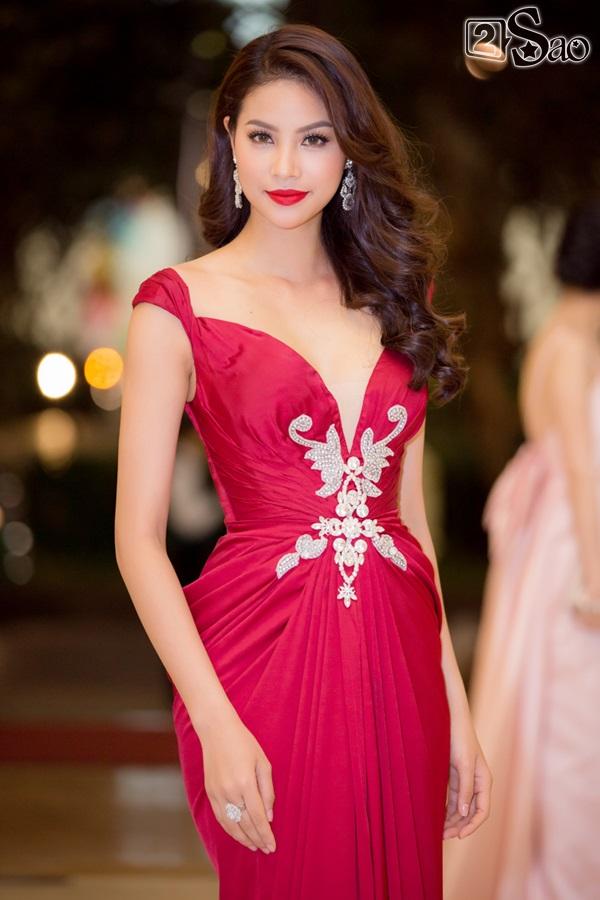 Hoa hậu Phạm Hương diện bộ váy đỏ lộng lẫy của nhà thiết kế Anh Thư. Bộ váy khoe vai trần gợi cảm kết hợp với phần váy đuôi cá vừa cổ điển vừa sang trọng giúp tôn lên vóc dáng quyến rũ của Phạm Hương. Thời gian gần đây, Phạm Hương thường xuyên diện trang phục đẹp mắt của Joli Poli trong các sự kiện quan trọng.
