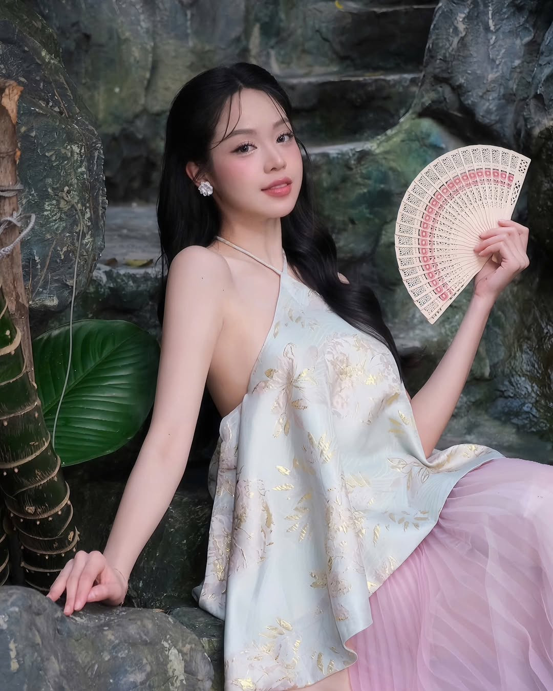 Huỳnh Thị Thanh Thuỷ khoe lưng trần cuốn hút với áo yếm lụa.