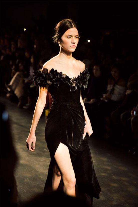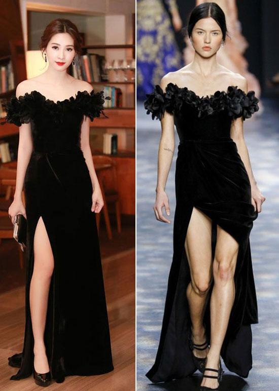 Tuy nhiên, bộ đầm của Thu Thảo diện rất giống với một thiết kế nằm trong bộ sưu tập thu đông 2016 hiệu Marchesa. Từ gam màu sắc, đường xẻ đùi, trễ vai, trang trí đính hoa 3D đều như "bản sao".