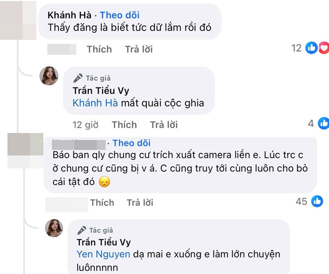 Trong đoạn clip được Tiểu Vy chia sẻ, nàng hậu khiến nhiều người vừa thương vừa buồn cười khi liên tục khóc nấc vì ấm ức. Dưới phần bình luận, cô còn khẳng định sẽ "làm lớn chuyện", trực tiếp trao đổi với ban quản lý chung cư nơi mình sinh sống.