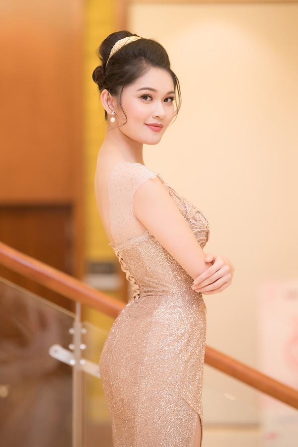 Á hậu Thùy Dung lựa chọn một chiếc váy ánh kim khoe được những đường cong nóng bỏng của mình