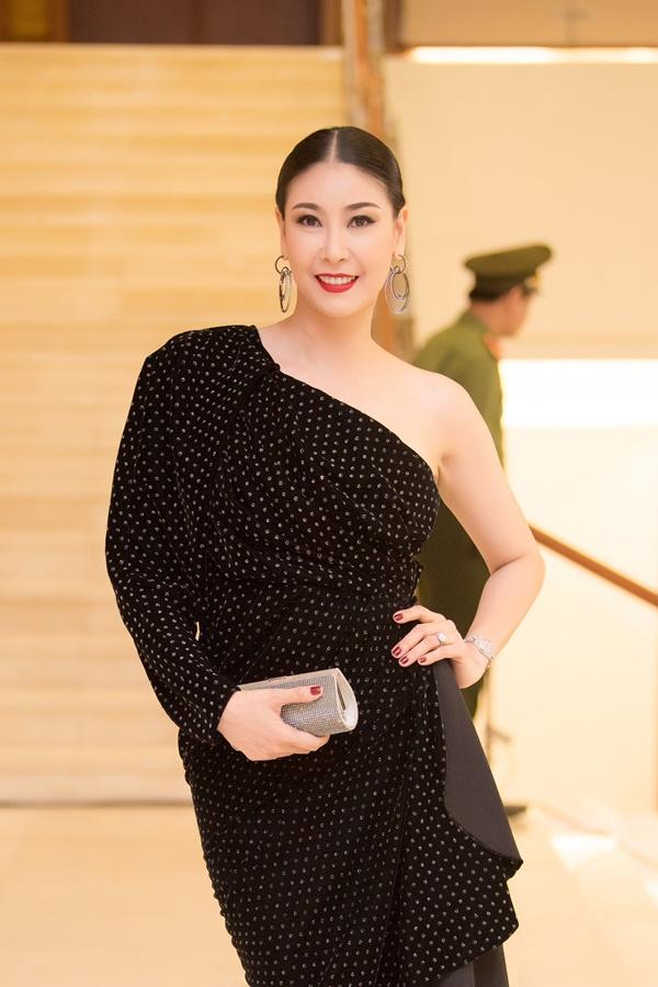 Hoa hậu Hà Kiều Anh sang trọng quyến rũ trong bộ váy đen xẻ lệch vai được thiết kế dành riêng cho mình