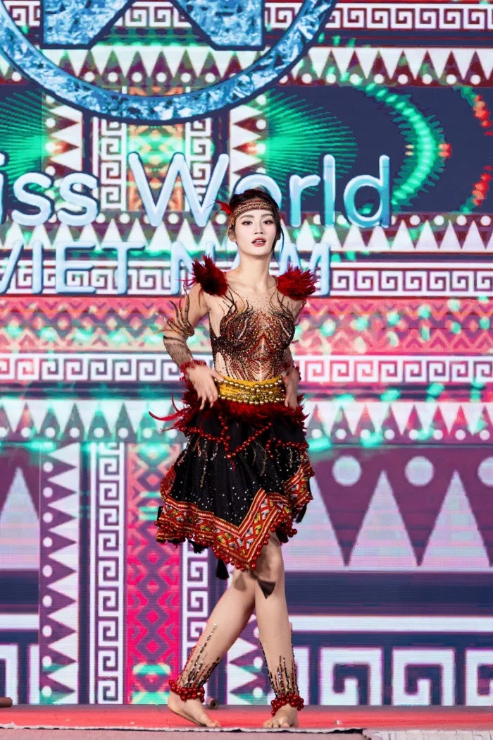Cũng trong sự kiện, Ý Nhi còn thể hiện phần nhảy "Dances of the world" sẽ trình diễn ở cuộc thi. Trang phục trong phần thi nhảy của Ý Nhi mang tên "Vũ điệu đại ngàn" lấy cảm hứng từ vùng núi rừng Tây Nguyên hoang dã, huyền bí.