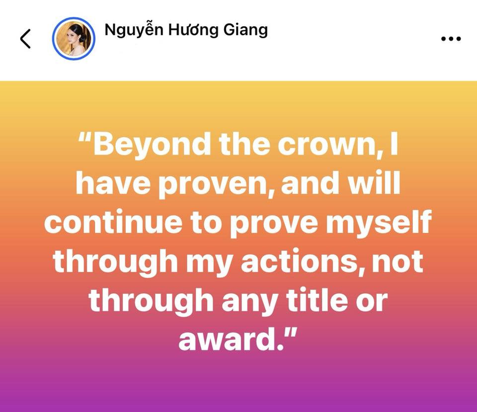 Đồng thời, người đẹp cũng công khai số tiền 50.000 vote để bình chọn cho Hương Giang tại hạng mục Beyond The Crown thực chất là 273 triệu đồng chứ không phải 264 triệu đồng vì lý do tỷ giá.