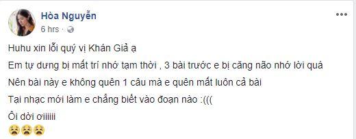 Hòa Minzy gửi lời xin lỗi khán giả trên Facebook