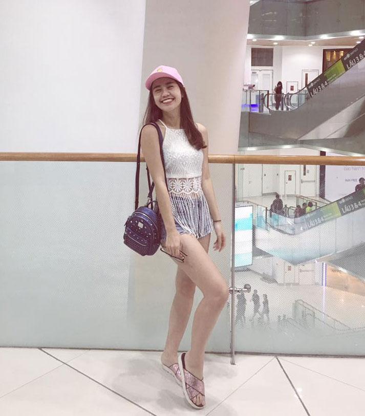 Ngọc Thảo trẻ trung xuống phố với áo yếm cách điệu và quần short jeans.