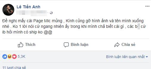 "Đề nghị mấy page quảng cáo mic, kính gỡ hình ảnh và tên của mình xuống nhé. Không một lời nói cứ ngang nhiên lấy ảnh khi mình không biết gì. Gần đây, nhiều người cứ inbox hỏi mình có ship hàng không?", trong cơn tức giận Hoa Vinh nói.