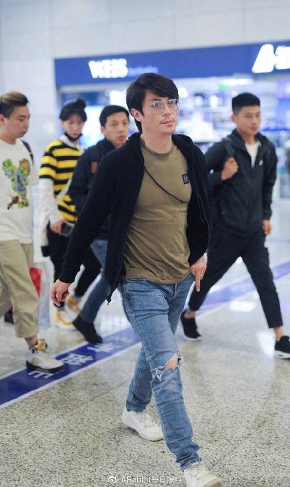 Chưa kể việc lựa chọn set đồ quần jean rách gối, áo thun xanh rêu cùng chiếc áo khoác xanh bên ngoài khiến chiều cao của Hoắc Kiến Hoa bị dìm đáng kể. Nhìn vào hình ảnh được chụp tại sân bay, không ai dám tin nam diễn viên cao 1m77 ngoài đời.