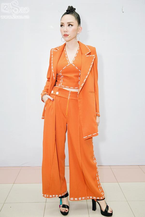 Tóc Tiên với thiết kế độc đáo, điểm nhấn là họa tiết viền trắng như những mũi vắt sổ