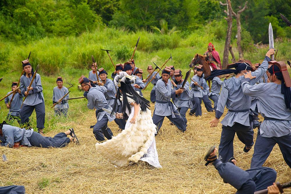Đây cũng là cảnh quay tốn nhiều công sức, tiền bạc của ê kíp khi phải đầu tư lớn về trang phục, đạo cụ... cho từng nhân vật. Ngoài ra, việc 2 diễn viên liên tục bị ngã ngựa ngay trên phim trường cũng tốn thêm thời gian bấm máy.