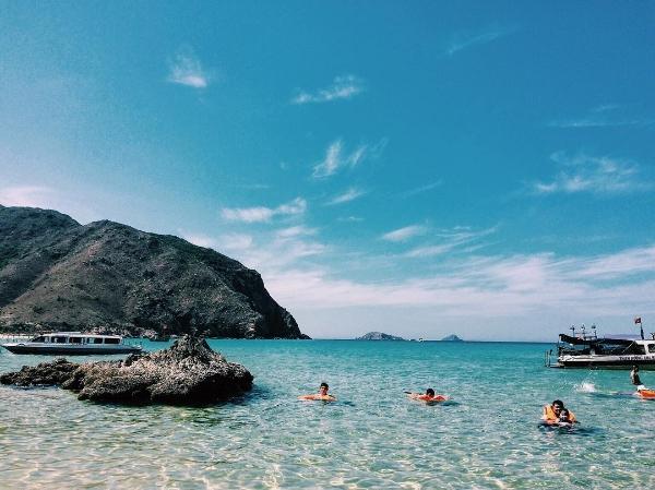 Nước trong vắt nhìn thấu tận đáy biển. Để đến đảo Kỳ Co, du khách phải di chuyển qua nhiều chặng, phổ biến nhất là cách đi đến Eo Gió, sau đó thuê thuyền hoặc cano đi ra đảo Kỳ Co. Thuyền sẽ đậu cách bờ khoảng 100 m, du khách sẽ lên thuyền thúng hoặc thuyền tự chế của người dân để vào bờ.