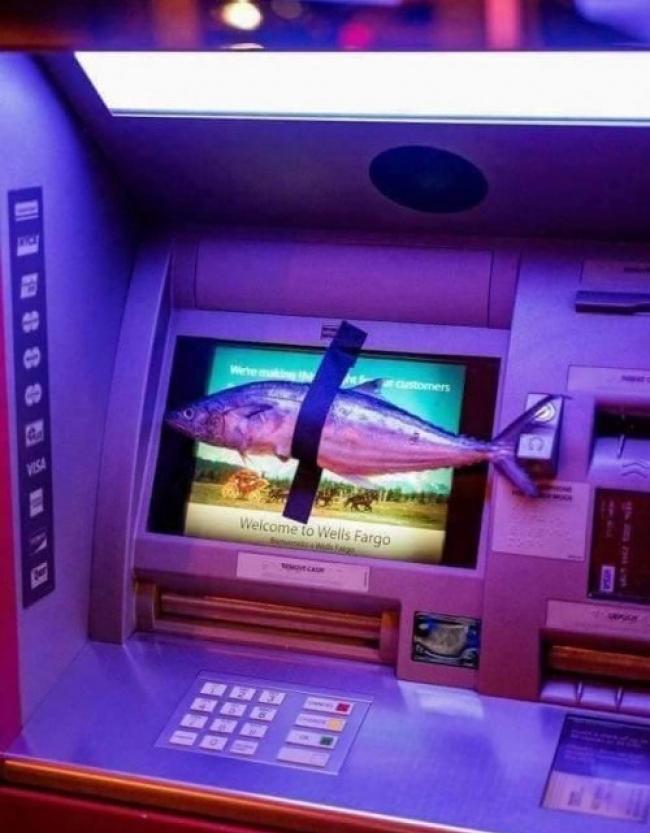 Cá nào mà lại "bơi" lên cả cây ATM thế này.