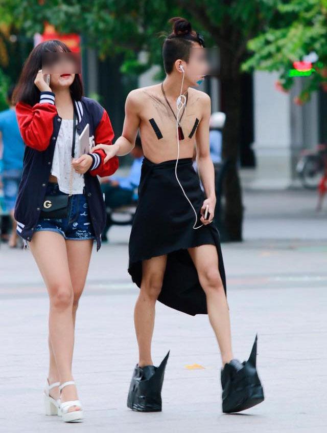 Một số bộ phận thanh niên Việt xuất hiện ở chốn đông người với trang phục hở hang, xuyên thấu hay những thiết kế khác thường, dị biệt đã không còn là điểu gì quá hiếm. Không chỉ các cô gái trẻ tự tin xuống phố với những bộ cánh mỏng manh, ngắn cũn mà các chàng trai cũng tỏ ra yêu thích những item phá cách đến khác người. Mới đây nhất, hình ảnh một nam thanh niên đi bộ ở phố Nguyễn Huệ cũng lọt vào ống kính của một người đi đường. Hình ảnh này đang nhận được nhiều phản hồi và bình luận chê bai của dân mạng.