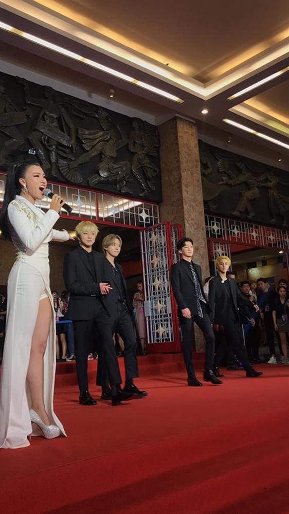 Trong buổi công chiếu phim “Tháng năm rực rỡ”, nữ diễn viên nổi bật với bộ suit phát sáng đầy độc đáo, phá cách. Được biết, bộ trang phục được chuẩn bị cầu kì theo cấu trúc 3D từ những bông hoa rực rỡ làm bằng đèn LED với mong muốn “Nữ MC triệu views” sẽ tỏa sáng theo cả nghĩa đen lẫn nghĩa bóng.