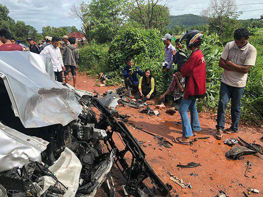 Bản tin trên website của cảnh sát quốc gia Campuchia cho thấy hình ảnh những chiếc xe bị hư hại nặng và nạn nhân tập trung bên đường.