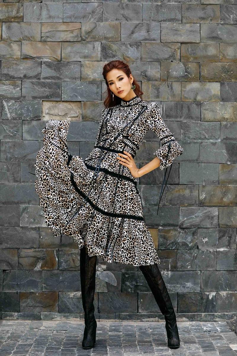 Thiết kế da báo và xếp tầng này khiến cho Hoàng Thùy trông "có da có thịt" hơn