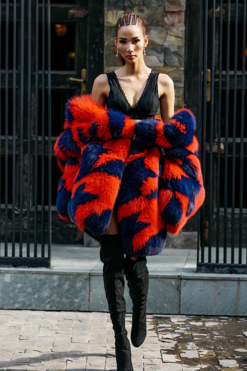 Ngoài thiết kế của Lê Thanh Hòa, chiếc áo khoác lông mang hai tông màu chủ đạo đỏ và tím than của NTK Linh Đoàn mà Hoàng Thùy mặc trong buổi quay hình cũng được nhiều người chú ý. Mẫu thiết kế được cho biết có giá tới 500 triệu đồng.