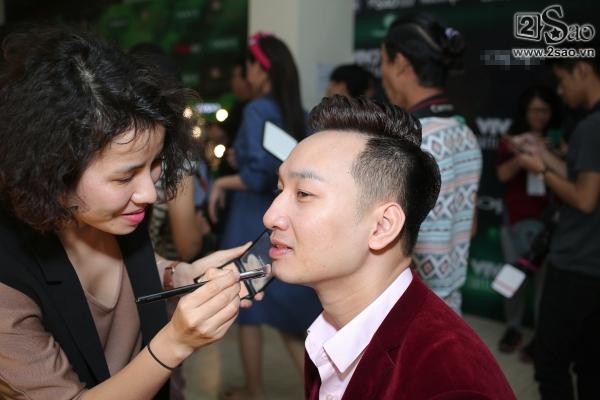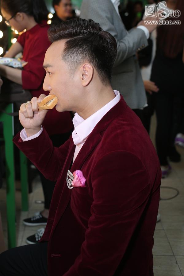 Ở phía sau hậu trường, anh chàng tranh thủ ăn bánh mỳ lót dạ trước giờ lên sóng