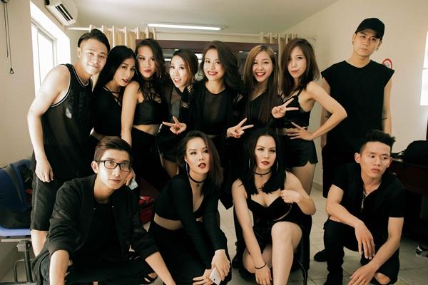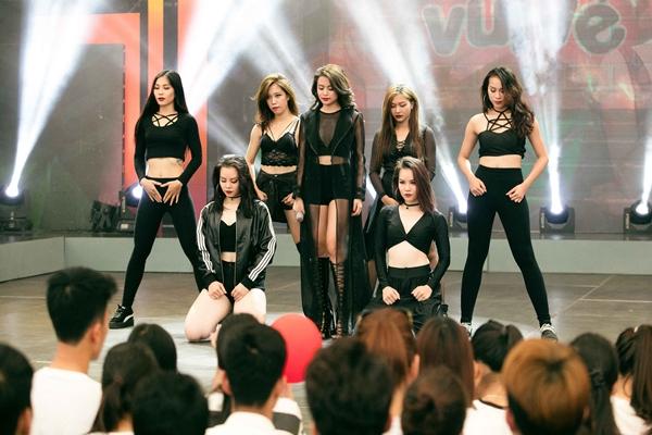 Đồng hành cùng cô là hai thành viên đội The Remix 2015 - biên đạo Minh Thư và DJ Tripple D.Ngay khi vừa xuất hiện, Hoàng Thùy Linh đã "làm nóng" sân khấu bằng phong cách thời trang sexy.