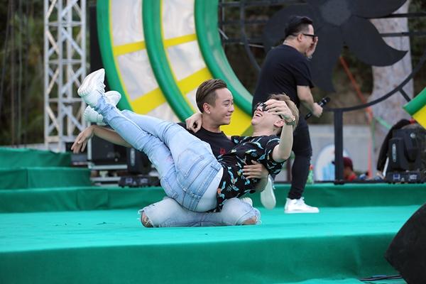 Trước khi đến với đêm đại nhạc hội diễn ra vào tối cùng ngày, 4 trai đẹp V-pop đã giành thời gian tham gia hết mình các trò chơi ngoài trời tạo nên không khí vô cùng náo nhiệt.