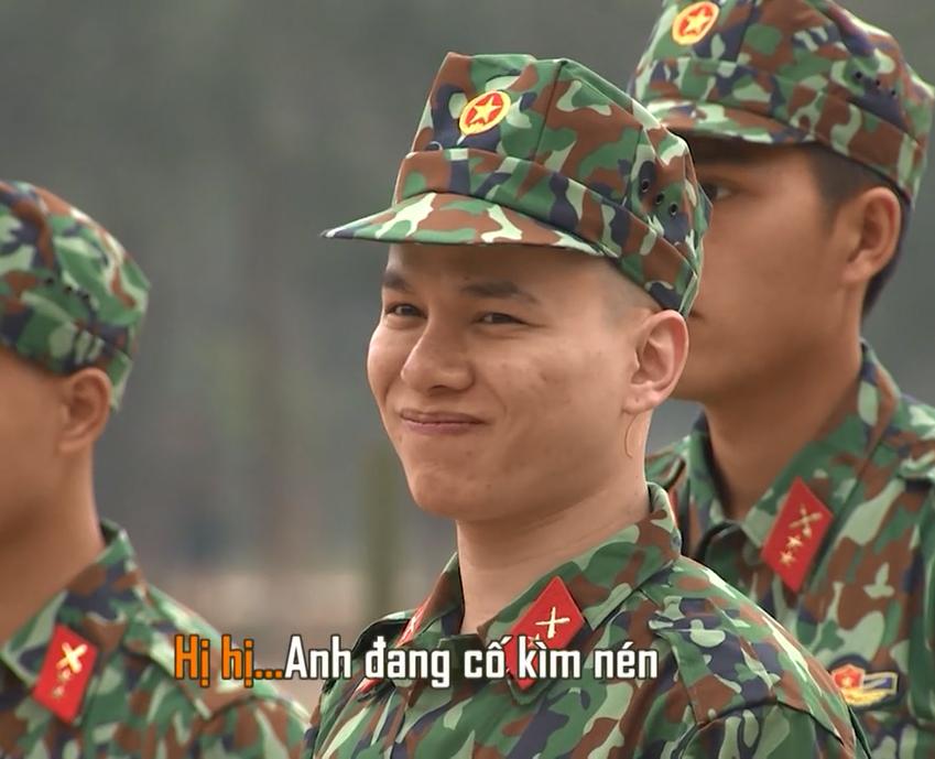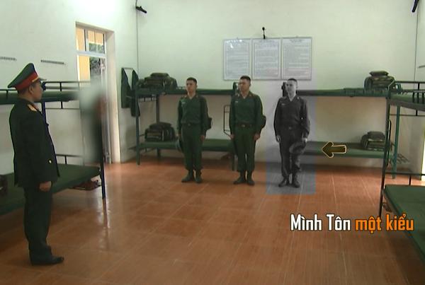 Ở nội dung huấn luyện tiếp theo, các chiến sĩ được hướng dẫn thao tác chào và báo cáo chỉ huy cơ bản. Bộ ba tân binh đều để lộ sự lóng ngóng trong giây phút thực hành. Những khẩu lệnh tưởng chừng dễ nhớ nhưng lại khiến họ bối rối, quên thứ tự vận dụng.