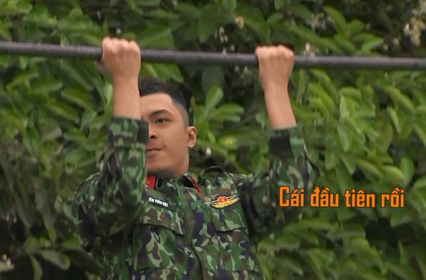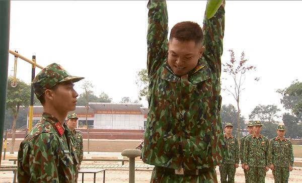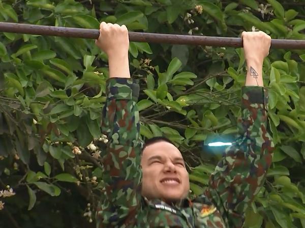 Nội dung huấn luyện đầu tiên là Co tay xà đơn. Đây là bài tập thể lực quen thuộc của nam giới. Chỉ huy đưa ra tiêu chí: Ít hơn 13 cái xếp loại yếu, 13 - 20 là loại đạt, 17 - 20 là loại khá và trên 21 là loại giỏi.