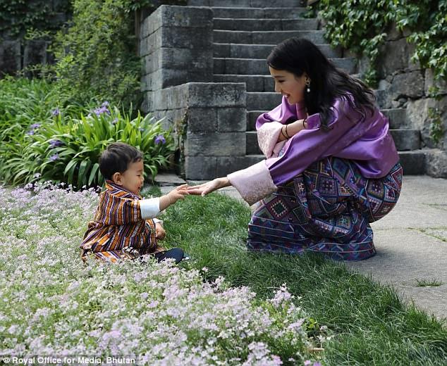 Trong bức ảnh đăng trên tấm lịch tháng 6 của Hoàng gia Bhutan có hình của hai mẹ con Hoàng hậu Jetsun Pema và Hoàng tử nhí Jigme Namgyel Wangchuck đang vui đùa trong vườn đầy cây cối xanh tươi. Điều đặc biệt là nhìn chàng trai nhí ngày càng rạng rỡ, bảnh trai và giống hệt vua cha của mình. Rất nhiều người đã bày tỏ sự ngưỡng mộ với niềm hạnh phúc ngập tràn của hai mẹ con.