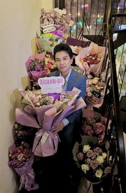 Sau mỗi chương trình nghệ thuật, nam ca sĩ nhận được rất nhiều hoa của người hâm mộ.