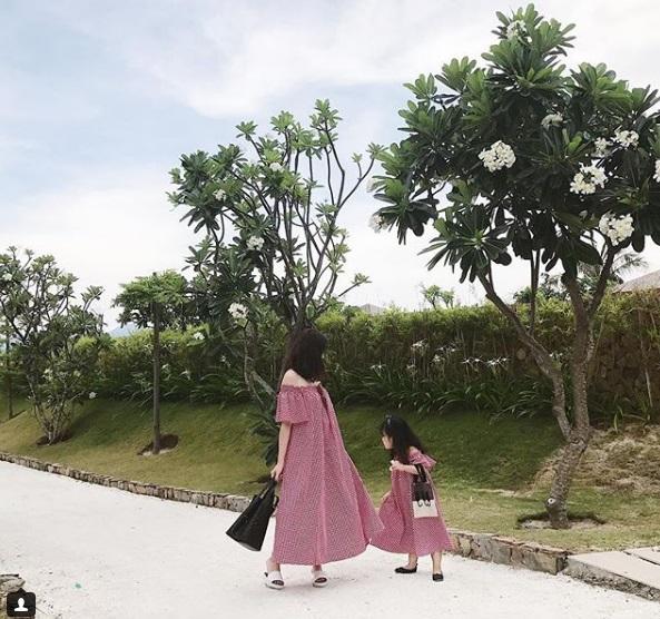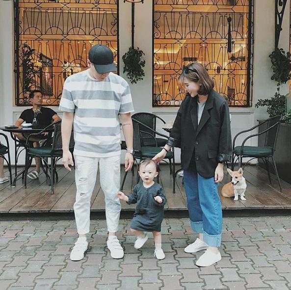 Cũng vốn là chủ shop thời trang, Heominhon thường chỉn chu trong outfit của gia đình mỗi khi xuất hiện.