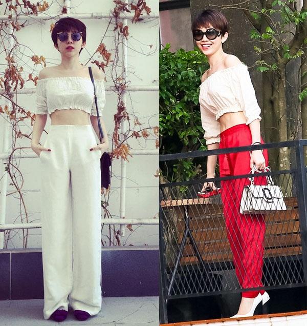 Dù ở trong set đồ nào, crop-top trắng trễ vai đều tạo ra được vẻ gợi cảm, cuốn hút.