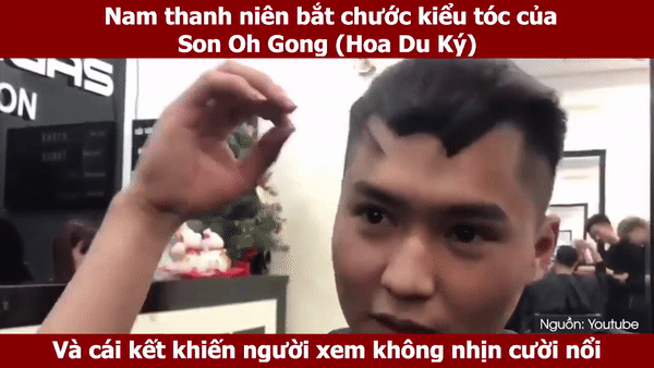 Kiểu tóc này ngay lập tức trở thành trào lưu được nhiều người học hỏi. Quá hâm mộ Son Oh Gong, nam thanh niên dưới đây nhận cái kết khiến người xem không thể nhịn nổi cười với kiểu tóc vòm mới lạ. Ngay khi vừa chia sẻ, clip nhận được nhiều lượt thích và bình luận hài hước.
